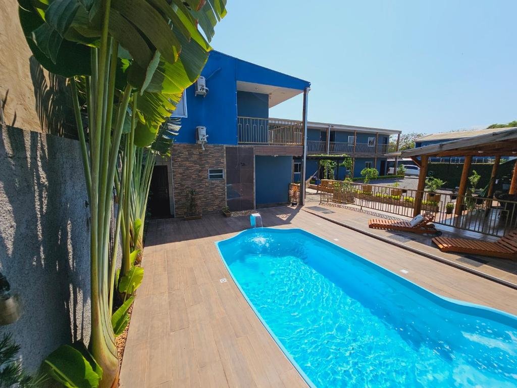 A estrutura é simples, organizada e bem cuidada, com piscina ao ar livre, jardim, terraço e estacionamento privativo gratuito, o que facilita bastante para quem está de carro alugado ou próprio. O ambiente é familiar e silencioso, ideal tanto para estadias curtas quanto para quem passa alguns dias explorando os passeios da região.